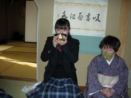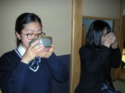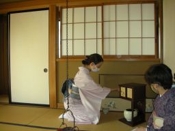普段の稽古ではできない炉の点前や三帖畳の小間で客としての心得を教えていただきました。