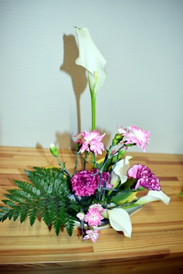生徒昇降口の向かいに活花を飾りました。是非ご覧ください。