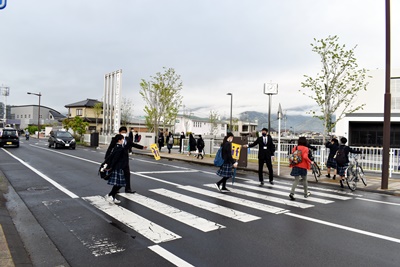 服装や挨拶など登校時のマナーおよび、交通安全の啓発を行っています。