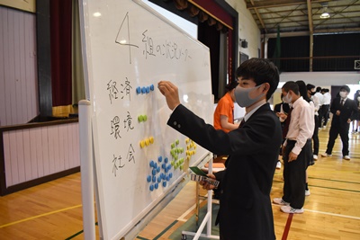 2年次生の青洲学にて、2030SDGsカードゲームを用い、体験的にSDGsを学びました。