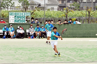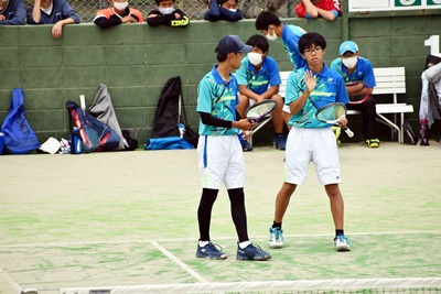 高校総体の1日目です。ソフトテニス部男子の様子です。