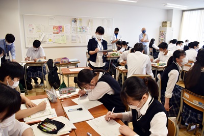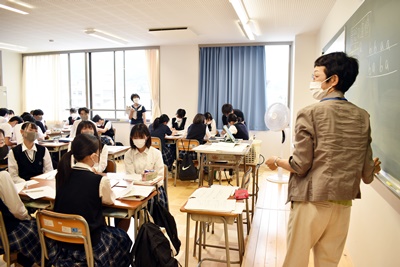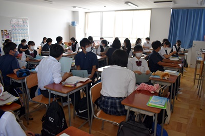 山梨県立青洲高等学校 > 学校生活 > 青洲DIARY > 6/7 教員相互授業観察 2021年6月7日カテゴリー: 青洲DIARY 学校生活 6/7 教員相互授業観察 授業力向上とより分かりやすい授業構築のため教員相互授業観察が行われています。 本日は、 1年6組 コミュニケーション英語I 飯室教諭 1年2組 数学I 渡邊教諭 1年1組 国語総合 伊東教諭 以上の授業の様子を掲載します。