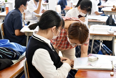 授業力向上とより分かりやすい授業構築のため、教員相互授業観察が行われています。