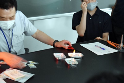 本日は、花火の色のもとである、金属イオンの炎色反応などの実験も行われていました。