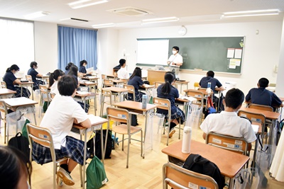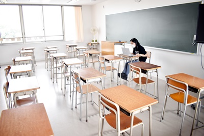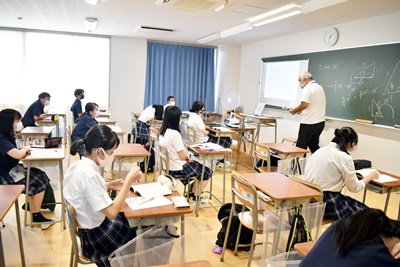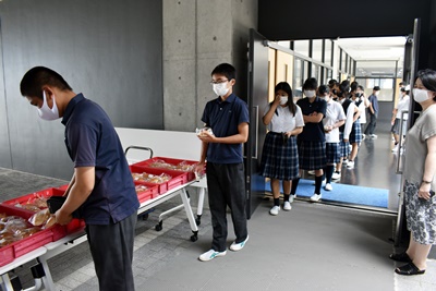 山梨県立青洲高等学校 > 学校生活 > 青洲DIARY > 8/31 分散登校または自宅でのオンライン授業 2021年8月31日カテゴリー: 青洲DIARY 学校生活 8/31 分散登校または自宅でのオンライン授業 本日は3,4,7,8組が登校し、 1,2,5,6組が自宅でオンライン授業となりました。 昼食の時間にも新型コロナウイルス対策を心掛けています。