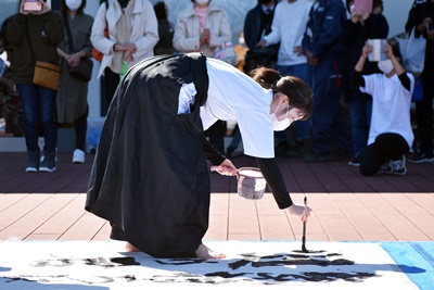 「甲州和紙祭り」にて、書道パフォーマンスを披露しました。