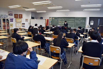 山梨県立青洲高等学校 > 学校生活 > 青洲DIARY > 10/25 教員相互授業参観&授業観察 2021年10月25日カテゴリー: 青洲DIARY 学校生活 10/25 教員相互授業参観&授業観察 授業力向上とより分かりやすい授業構築のため、教員相互授業参観及び管理職授業観察が行われています。 本日は 2年5組 数学B 佐藤教諭 1年3,4組 音楽 薬袋教諭 の授業の様子を掲載します。