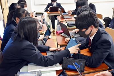 山梨県立青洲高等学校 > 学校生活 > 青洲学 > 11/11 2年次青洲学 2021年11月11日カテゴリー: 青洲学 青洲DIARY 学校生活 11/11 2年次青洲学 2年次の青洲学では、現在、修学旅行へ向け、 三重県、伊勢志摩と市川三郷との文化の違いなどをテーマに 調査研究を行っています。
