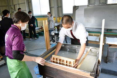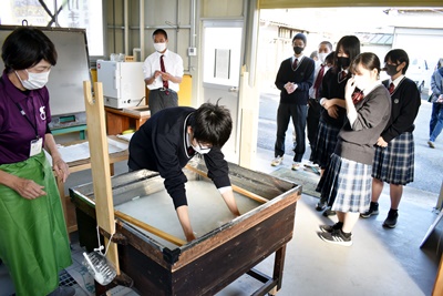 山梨県立青洲高等学校 > 学校生活 > 青洲学 > 11/17 青洲学フィールドワーク 2021年11月17日カテゴリー: 青洲学 青洲DIARY 学校生活 11/17 青洲学フィールドワーク 1年次の青洲学では、市川三郷地域の歴史、地場産業、防災などについて 学科をこえた班を作り、研究テーマを決めて学習を行っています。 本日は、フィールドワークを一部の班が行いました。 市川和紙夢工房、齊木煙火本店 山一和紙工業、峡南農務事務所、市川三郷役場、みたまの湯 道の駅富士川、農協大塚共選所 以上の事業所の訪問などを行いました。