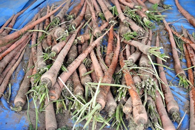 本日は、市川三郷町より収穫したばかりの大塚ニンジンが届き、