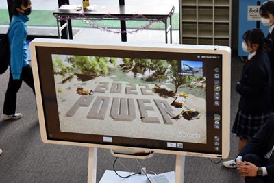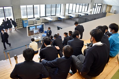 山梨県立青洲高等学校 > 教育活動 > 工業科 > 土木オンライン動画視聴 2021年12月20日カテゴリー: 工業科 教育活動 青洲DIARY 学校生活 土木オンライン動画視聴 土木科の教諭の呼びかけで、本日行われた、 浅原橋の下に、湯澤工業がICT機器を利用し、巨大メッセージを河原に描く様子を オンライン動画にて視聴しました。 視聴会は、アカデミックスクエアの檜大階段にて行われました。