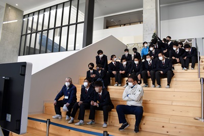 視聴会は、アカデミックスクエアの檜大階段にて行われました。