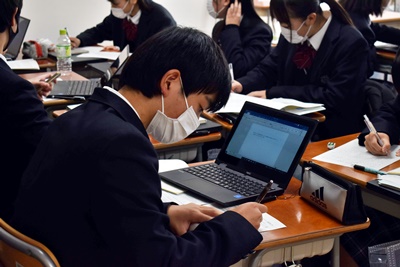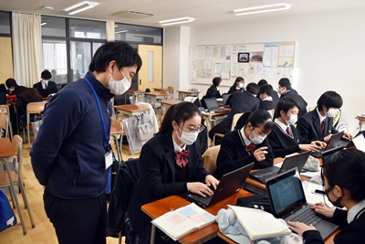 山梨県立青洲高等学校 > 学校生活 > 青洲学 > 12/22 1年次青洲学 2021年12月22日カテゴリー: 青洲学 青洲DIARY 学校生活 12/22 1年次青洲学 1年次の青洲学では学科をこえた班をつくり、 市川三郷地域の歴史、防災、地場産業などについて研究テーマを決め、 フィールドワークなどを行いながら学習を行っています。 今日までにすべての班がフィールドワークを終え、 発表に向け調べた内容をまとめる作業を始めています。