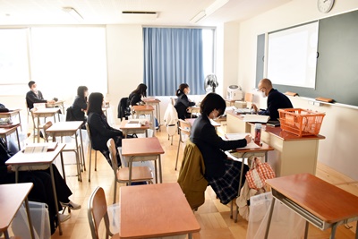 登校したクラスについては、クラスを分割し、授業を実施しています。