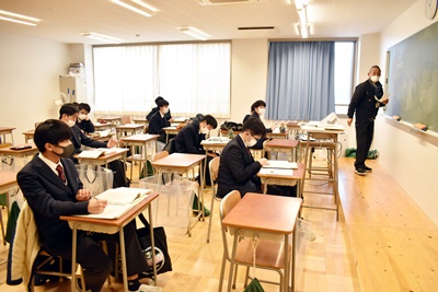 山梨県立青洲高等学校 > 学校生活 > 青洲DIARY > 1/27 分散登校・分割授業またはリモート授業 2022年1月27日カテゴリー: 青洲DIARY 学校生活 1/27 分散登校・分割授業またはリモート授業 昨日から分散登校・分割授業またはリモート授業が行われています。 登校したクラスについては、クラスを分割し、授業を実施しています。 本日は、昨日とクラスを入れ替え、実施しました。
