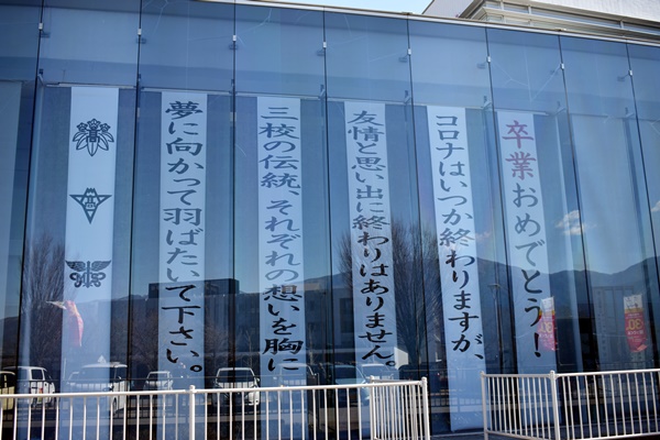市川三郷町役場では、3校の卒業生に向けメッセージを掲示してくれました。
