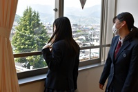 やっと自分たちの教室を見ることができ、少し生徒の表情も和らいでいる様子が見られました。