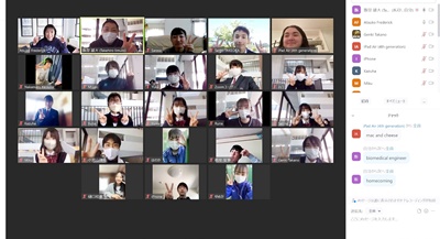山梨県立青洲高等学校 > 部活動 > ESS > 4/30 ESS部 アメリカの高校生とオンライン交流 2022年4月30日カテゴリー: 部活動 ESS 4/30 ESS部 アメリカの高校生とオンライン交流 4月30日(土)に、ESS部と2年次E類型の生徒が9,300kmの距離と15時間の時差を超え、 アメリカコロラド州の高校生とzoomを使って交流しました。 英語が通じて楽しかった気持ちと、もっと英語で詳しく伝えたかったという歯がゆい気持ちの両方を得て、 今後の更なる向上心につながった様子でした。
