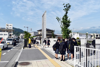 山梨県立青洲高等学校 > 学校生活 > 青洲DIARY > 5/18 登校時マナーアップ 2022年5月18日カテゴリー: 青洲DIARY 学校生活 5/18 登校時マナーアップ 登校時マナーアップ指導が行われています。 登校時の服装やマナー、交通安全の啓発などを目的として 年間を通じ実施しています。