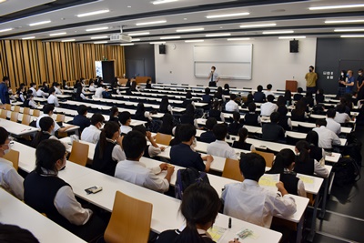 原付バイク通学者集会を実施し、「セーフティドライブ・チャレンジ123」への登録手続きを行いました。