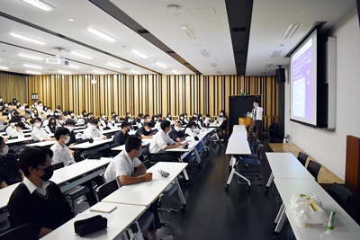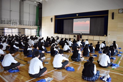 山梨県立青洲高等学校 > 学校生活 > 青洲学 > 2年次青洲学講演会 2022年6月10日カテゴリー: 青洲学 青洲DIARY 学校生活 2年次青洲学講演会 2年次の青洲学では、学科を混合した班を形成し、 テーマを決め、峡南地域の研究を進めます。 本日は、 ジット株式会社 管理本部 総務人事課主任補 小宮山かおり氏を講師としてお招きし、 地域の状況や環境、課題などに根差した社会貢献などについて学習し、 また、 山梨大学教育学部科学教育講座准教授 佐々木智謙氏を講師としてお招きし、 論文について書き方や重要な点等について学習しました。