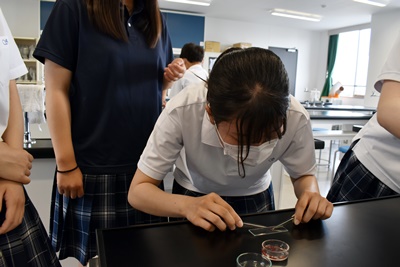 3年3,4組、2年3,4組、3年5,6組の生物の授業で