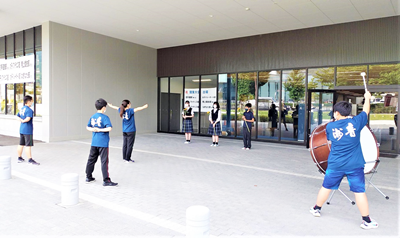 競技会に向けての作品を生ける前に、応援団からのエールもいただきました。