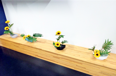山梨県立青洲高等学校 > 部活動 > 華道 > いけばな小原流 学生いけばな競技会 中部地区大会出品 2022年6月24日カテゴリー: 部活動 華道 いけばな小原流 学生いけばな競技会 中部地区大会出品 華道部です。小原流学生いけばな競技会の中部地区大会に出品する花を生けました。花材は、ひまわりが2本、クッカバラという葉を3本です。競技会に向けての作品を生ける前に、応援団からのエールもいただきました。大変心に残りました。ありがとうございました。地区大会の結果は7月11日に発表されます。