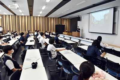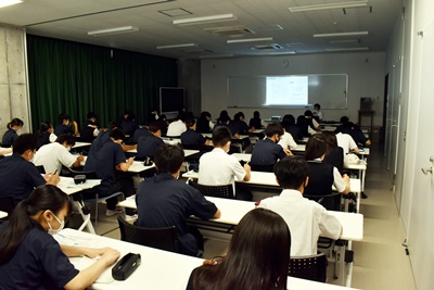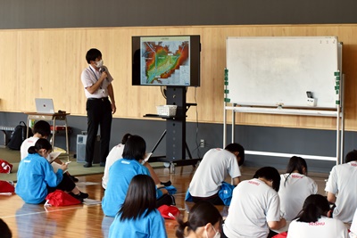 山梨県立青洲高等学校 > 学校生活 > 青洲学 > 6/24 1年次青洲学防災講演 2022年6月24日カテゴリー: 青洲学 青洲DIARY 学校生活 6/24 1年次青洲学防災講演 1年次の青洲学では、市川三郷地域の歴史、防災、地場産業などについて、 学科を超えた班を作り、各班でテーマを決め、研究を進めていきます。 本日は、地震、水害、豪雨災害などについてそれぞれの班の代表がそれぞれ講演を受講しました。 今後、本日得た情報を共有し、市川三郷地域、または身の回りの環境にどうつながっていくのかなどを話し合っていく予定です。