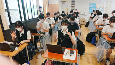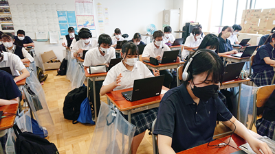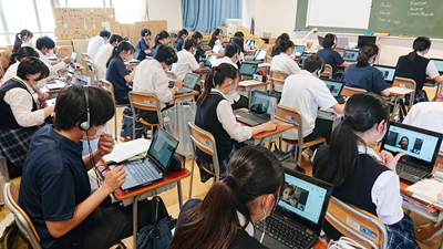 外国にいる講師たちとの会話を生徒たちはとても楽しんでいました。