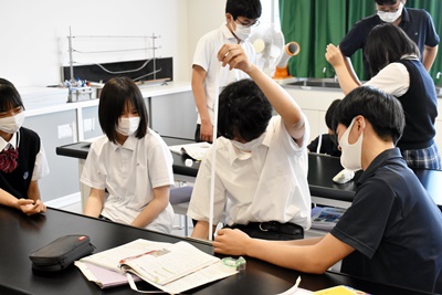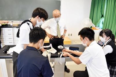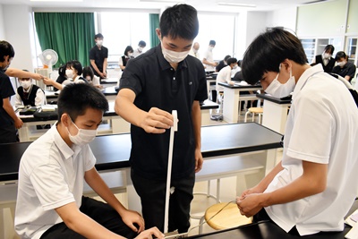 山梨県立青洲高等学校 > 学校生活 > 青洲DIARY > 授業の様子 2022年7月8日カテゴリー: 青洲DIARY 学校生活 授業の様子 1年3組物理基礎の授業の様子を掲載します。 加速度の測定の実験を行っていました。