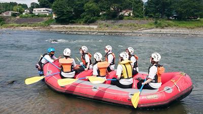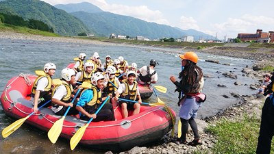 ラフティングでは外国人のガイドとの英語での会話を楽しみ、
