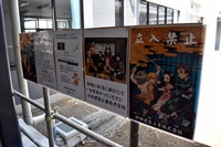 自由勾配側溝工事のお知らせ看板は、今話題のアニメを利用した看板でした。