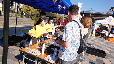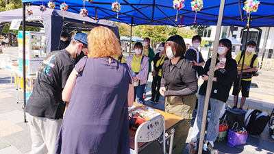 生徒は運営だけなく、英語を使って接客したり、出展者からの依頼で通訳を行ったりしました。