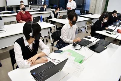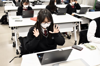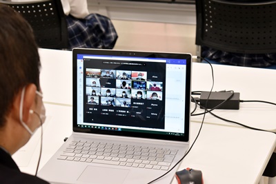 生徒は、BYOD端末を利用し、式典に参加後、楽山一中の生徒との