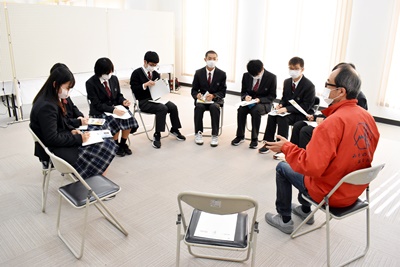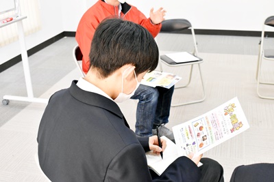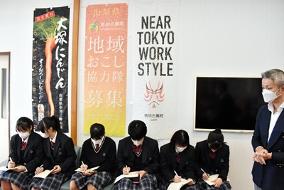 青洲学では学科をこえた班をつくり、市川三郷町の