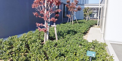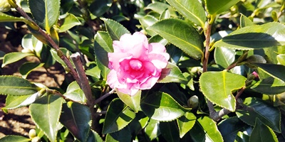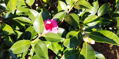 植え込みの寒椿の蕾がひとつ、また一つと花を咲かせています。