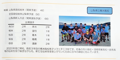 山梨県立青洲高等学校 > 部活動 > ソフトテニス > 男子ソフトテニス部 2022年度関東大学選抜・高校選抜ソフトテニス対抗戦大会 2022年11月28日カテゴリー: 部活動 ソフトテニス 男子ソフトテニス部 2022年度関東大学選抜・高校選抜ソフトテニス対抗戦大会 令和4年11月26日(土)・27日(日)に熊谷スポーツ文化公園彩の国くまがやドーム多目的運動場において、上記大会が行われました。山梨県代表として2日間を対戦してきましたので報告致します。参加者は以下の10名になります。舟久保(2-6)・根岸(2-6)松田(2-5)・保坂(2-5)望月(1-3)・青木(1-4)依田(2-5)・赤池(2-3)髙橋(1-8)・遠藤(2-2) 11/26(土)予選Dブロック明治大学③-0 負け慶應義塾大学③-0 負け 11/27(日)3位決勝トーナメント埼玉県高校選抜チーム③-0 負け群馬県高校選抜チーム②-1負け この2日間を通して、全国トップレベルの大学生や関東トップの高校選抜チームと対戦をすることができ、 来年度に向けてのチーム意識の向上と目標の再設定が必要であると実感しました。 また、生徒達自身はもちろんのこと、顧問もレベルの違いを目の当たりにし、県外で勝ち上がる為にはもっと研鑽が必要だと感じました。翌日から修学旅行を控えた2年生を帯同させる中で、様々な配慮をしていただきまして、ありがとうございました。