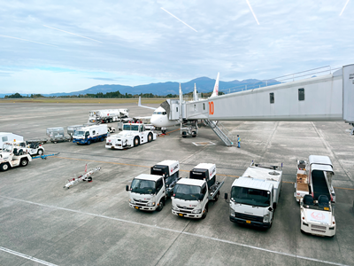商業科・工業科 鹿児島空港に着き、搭乗を待っております。