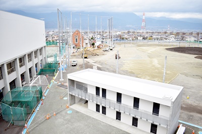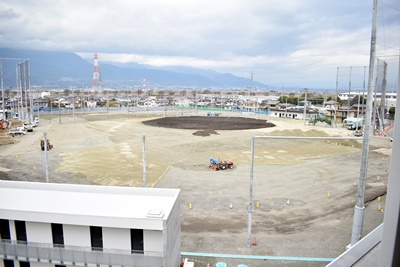 山梨県立青洲高等学校 > 学校生活 > 青洲DIARY > 12/5 グラウンド工事の様子 2022年12月5日カテゴリー: 青洲DIARY 学校生活 12/5 グラウンド工事の様子 野球場にダイヤモンドを形作る黒い土が入りました。 テニスコートや、サッカーグラウンドも少しずつ形ができてきました。
