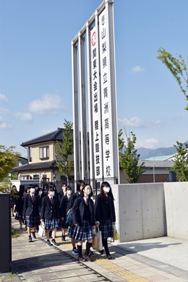 山梨県立青洲高等学校 > 学校生活 > 青洲DIARY > 4/12 登校指導(登校時マナーアップ運動) 2023年4月12日カテゴリー: 青洲DIARY 学校生活 4/12 登校指導(登校時マナーアップ運動) 本日から全年次そろっての登校日となりました。 登校時マナーアップ運動を通して、交通ルールや服装の指導を行っています。 今年度から、自転車通学者はヘルメットを着用しています。