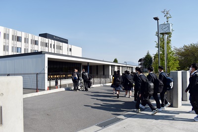 今年度から、自転車通学者はヘルメットを着用しています。