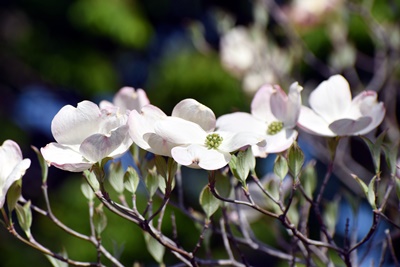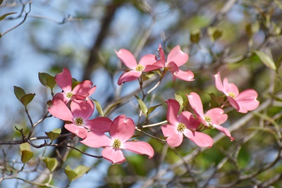 桜の季節も終わり、学校前の神明公園では、ハナミズキが、