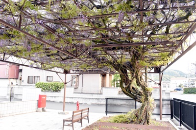 職員駐車場に面する市川三郷町指定天然記念物、代官所の藤も花を咲かせ始めました。