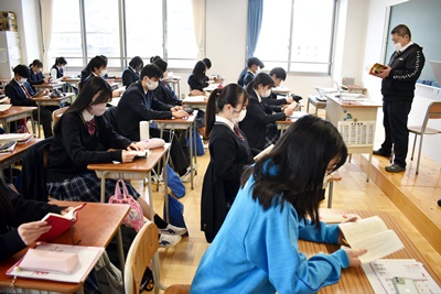 青洲高校の朝は読書から始まります。