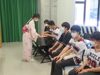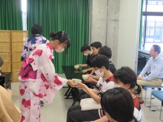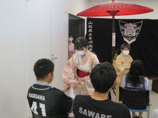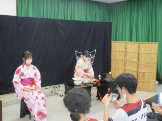 6月28日 青麗祭茶会が開催されました。部員全員が浴衣を着用し、多くの先生方、生徒の皆さんに茶道を体験していただくことができました。