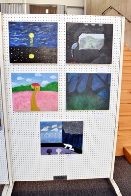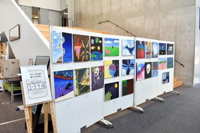 1年次3,4組の美術選択者の授業課題の展示が行われています。