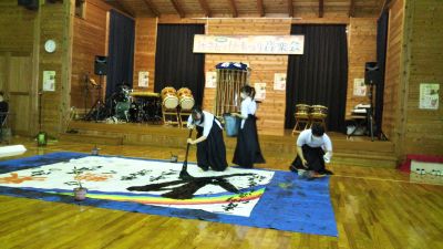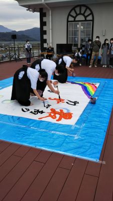 6月 学園祭で書道パフォーマンスと作品を展示。